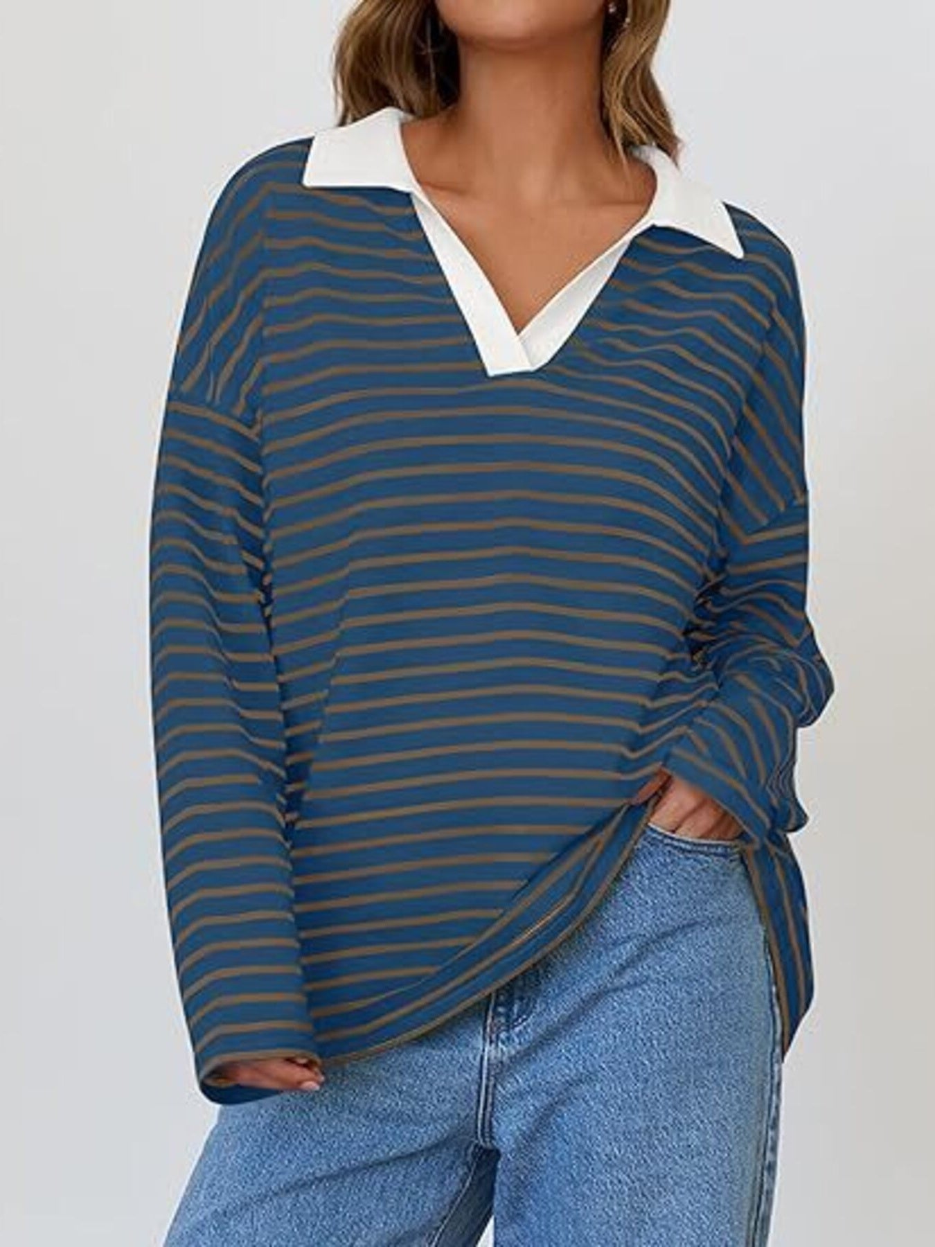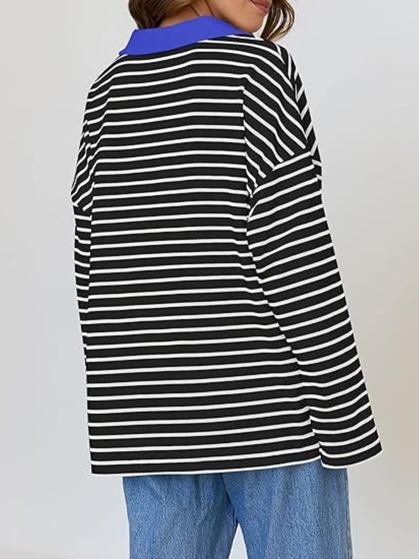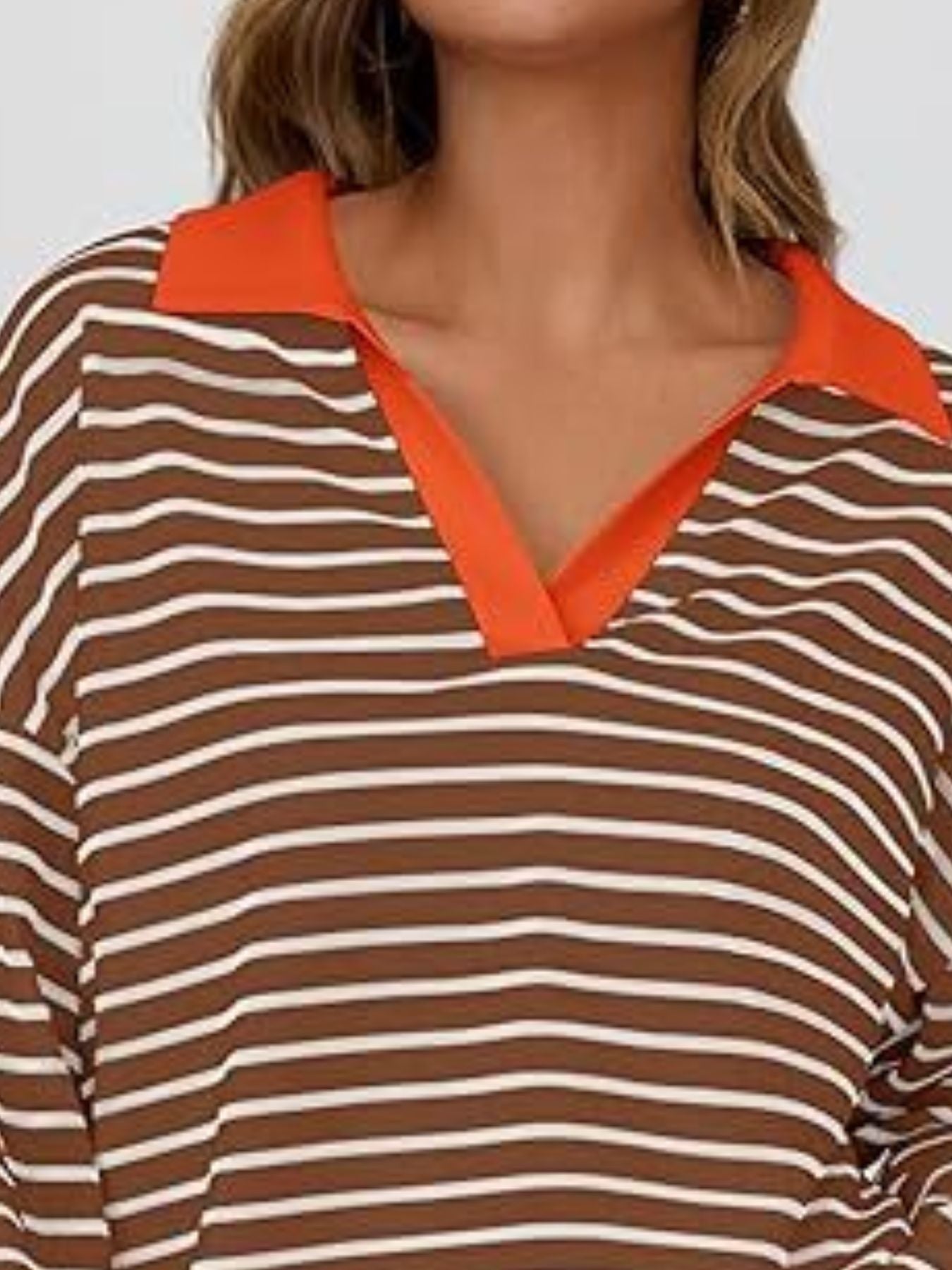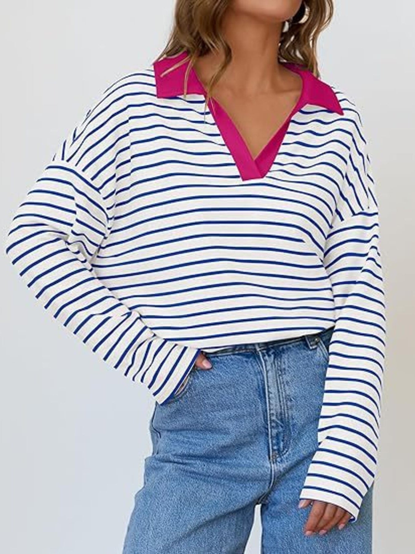 Luxlinn | Striped Contrast Collar Long Sleeve Top – Stylish Women’s Blouse