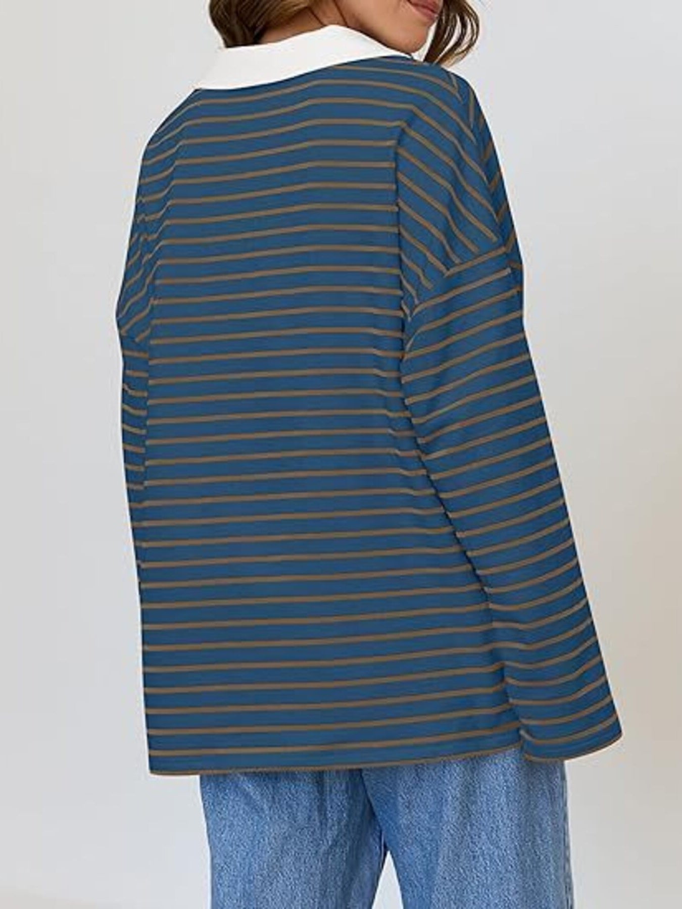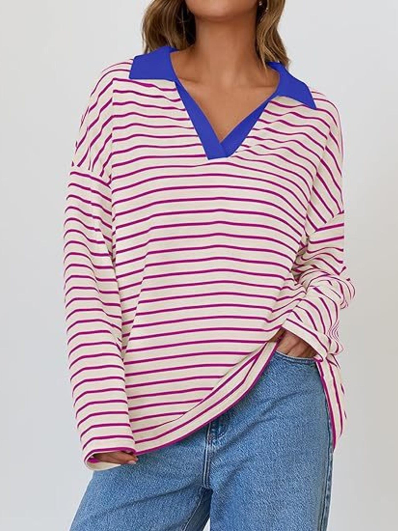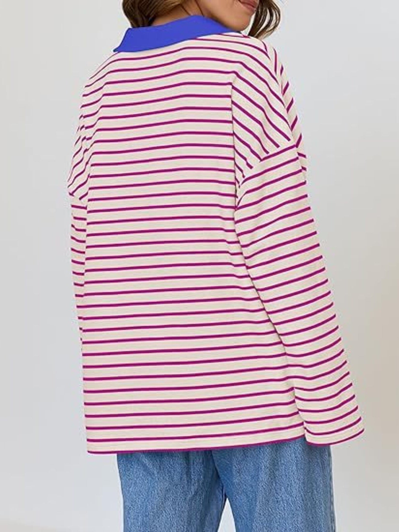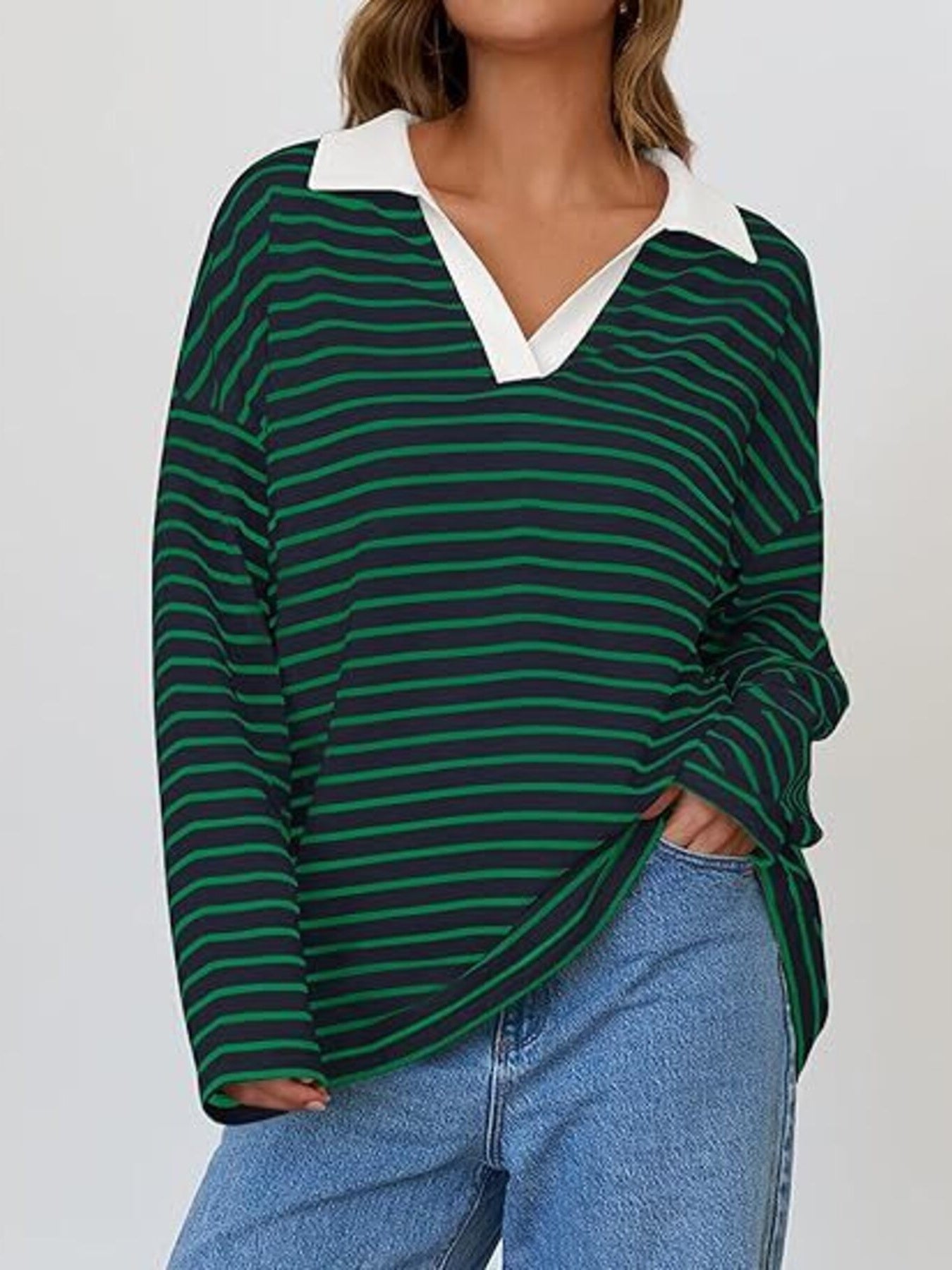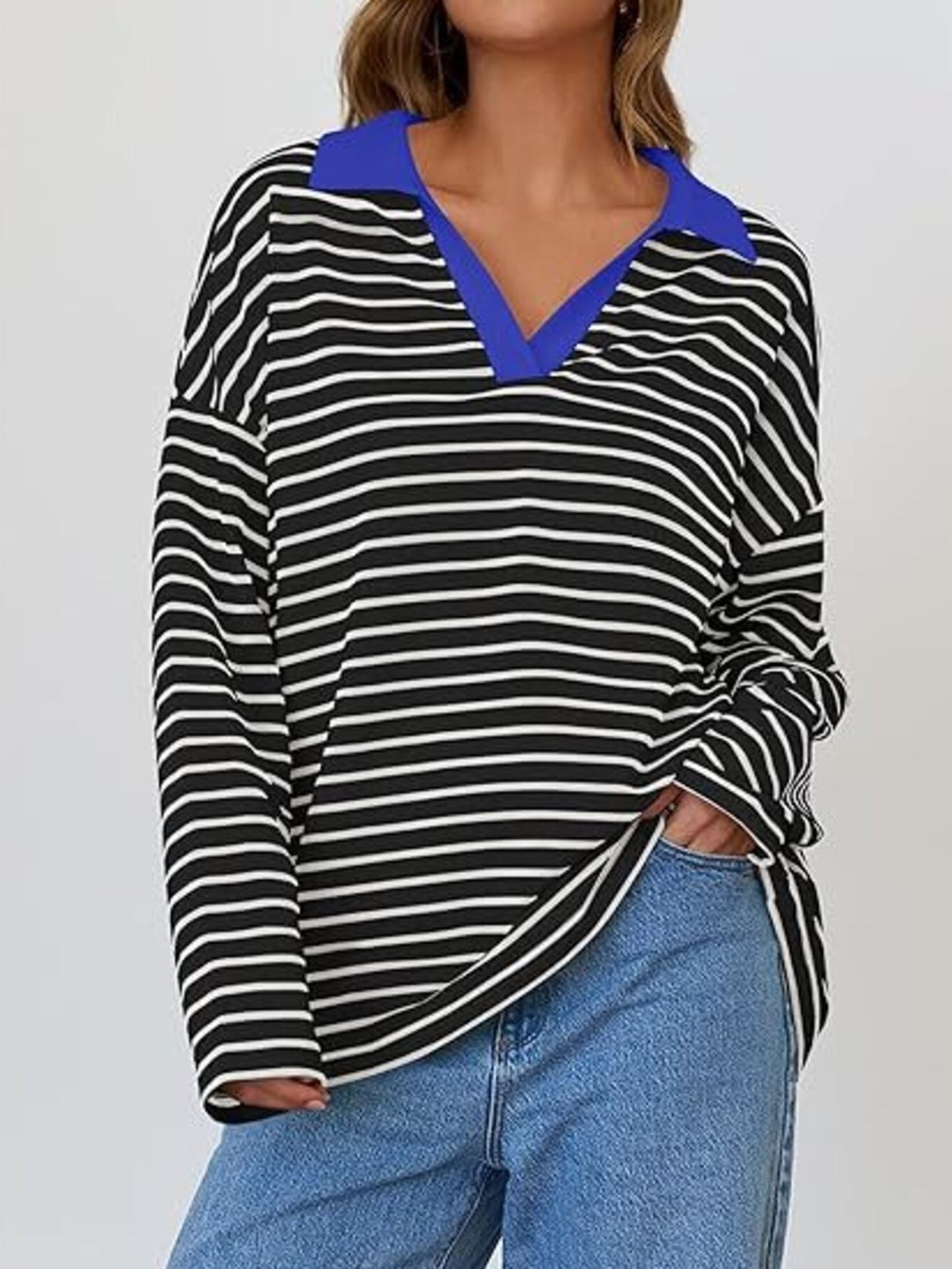 Luxlinn | Striped Contrast Collar Long Sleeve Top – Stylish Women’s Blouse