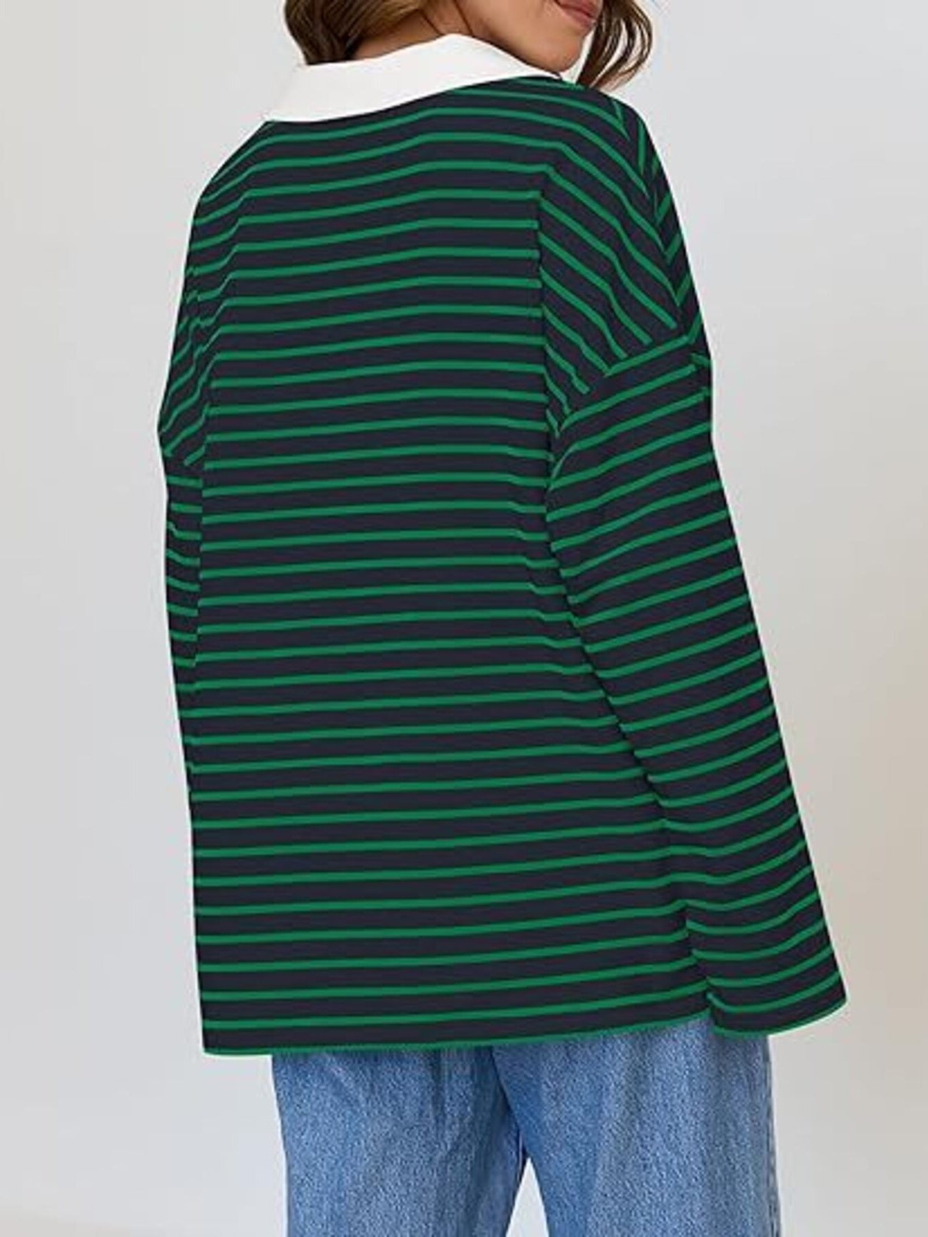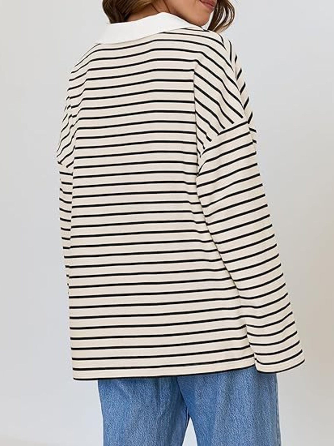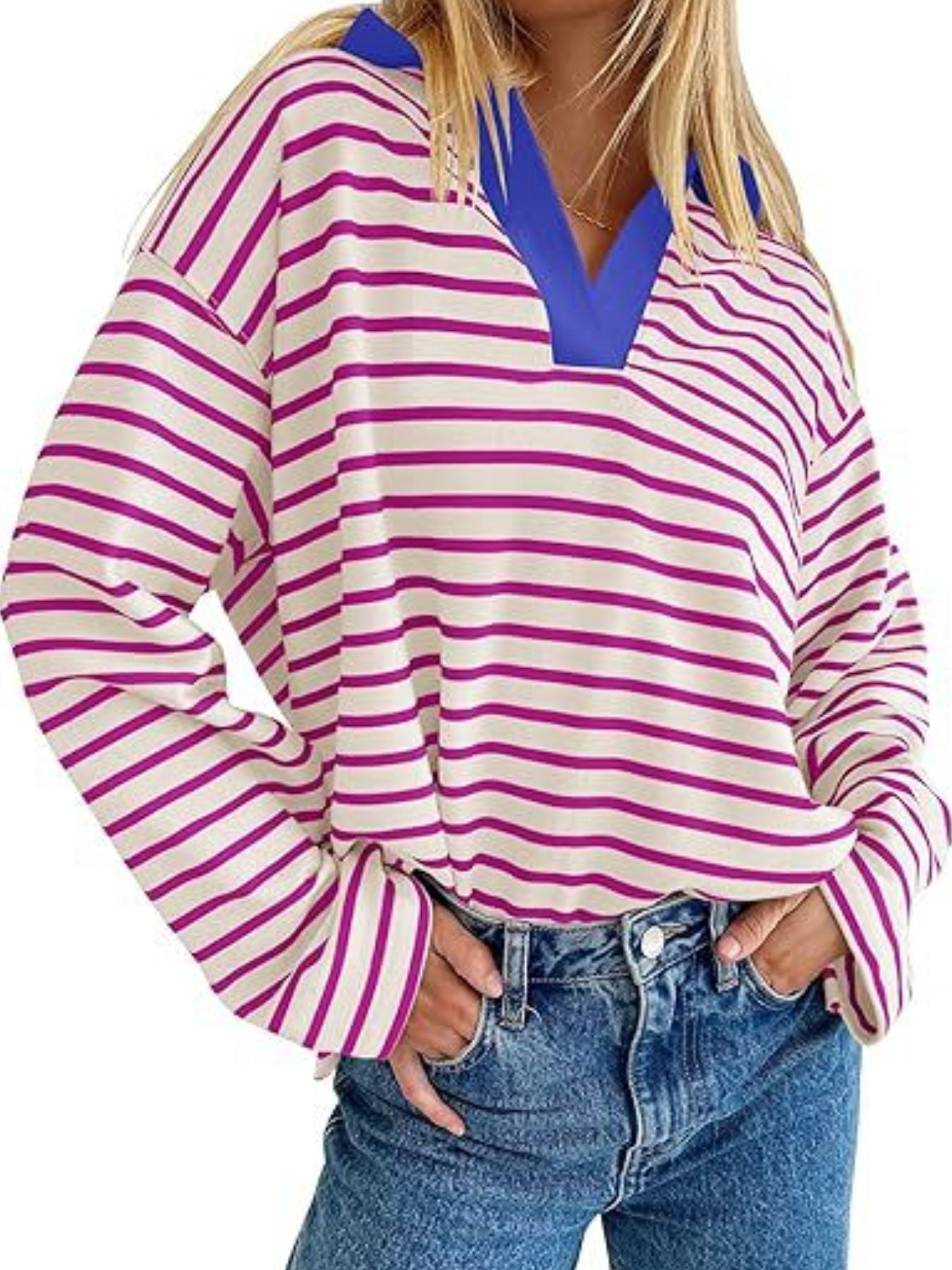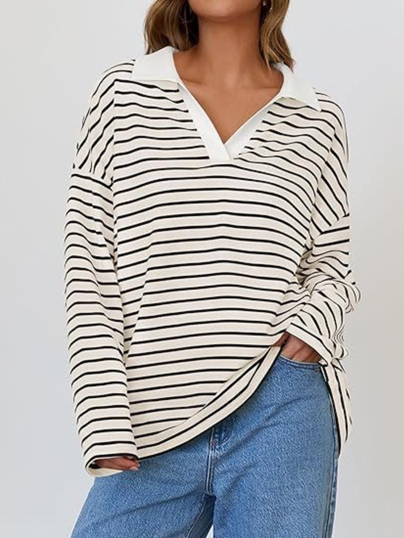 Luxlinn | Striped Contrast Collar Long Sleeve Top – Stylish Women’s Blouse