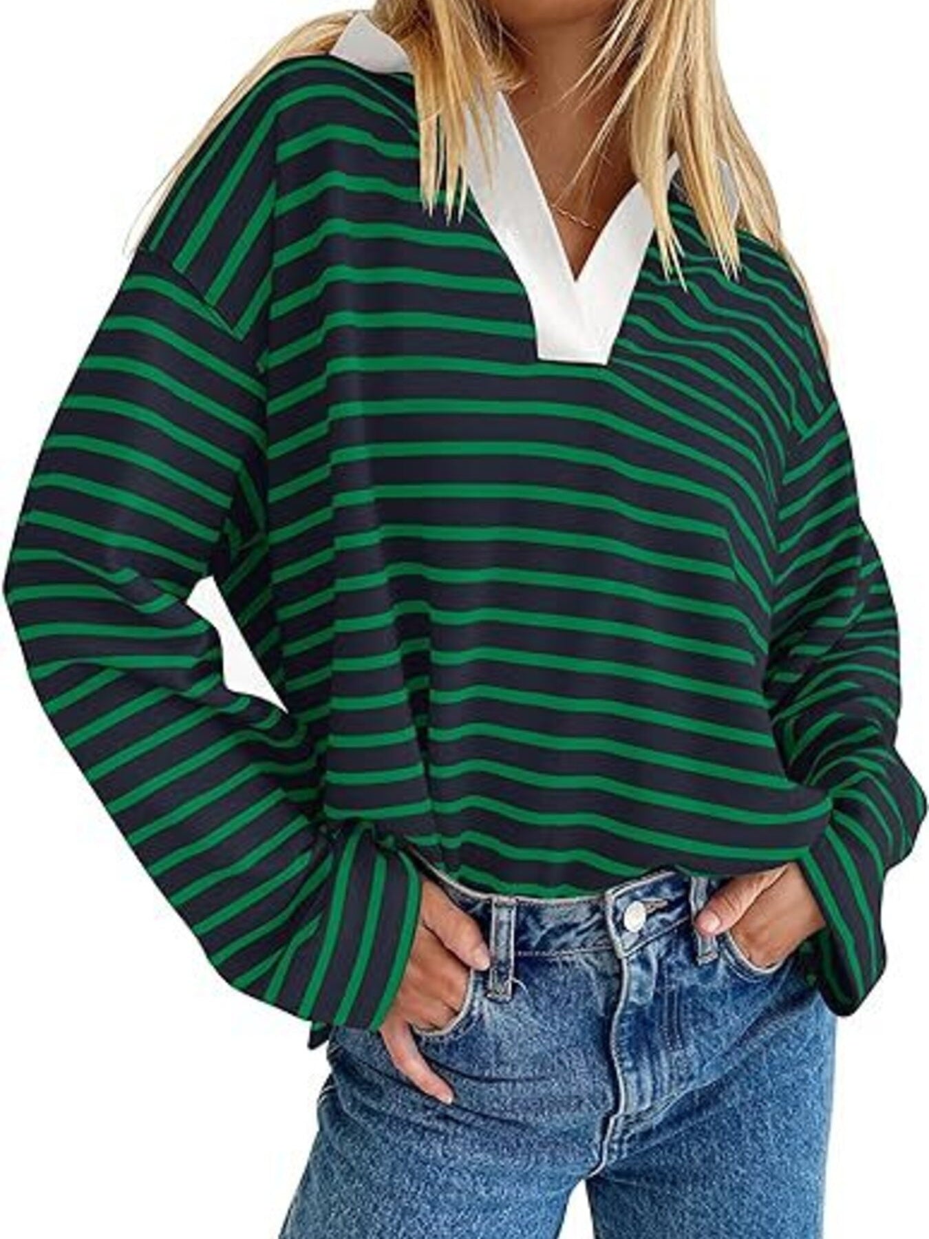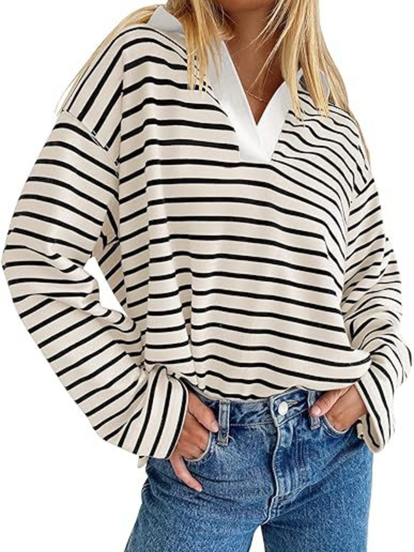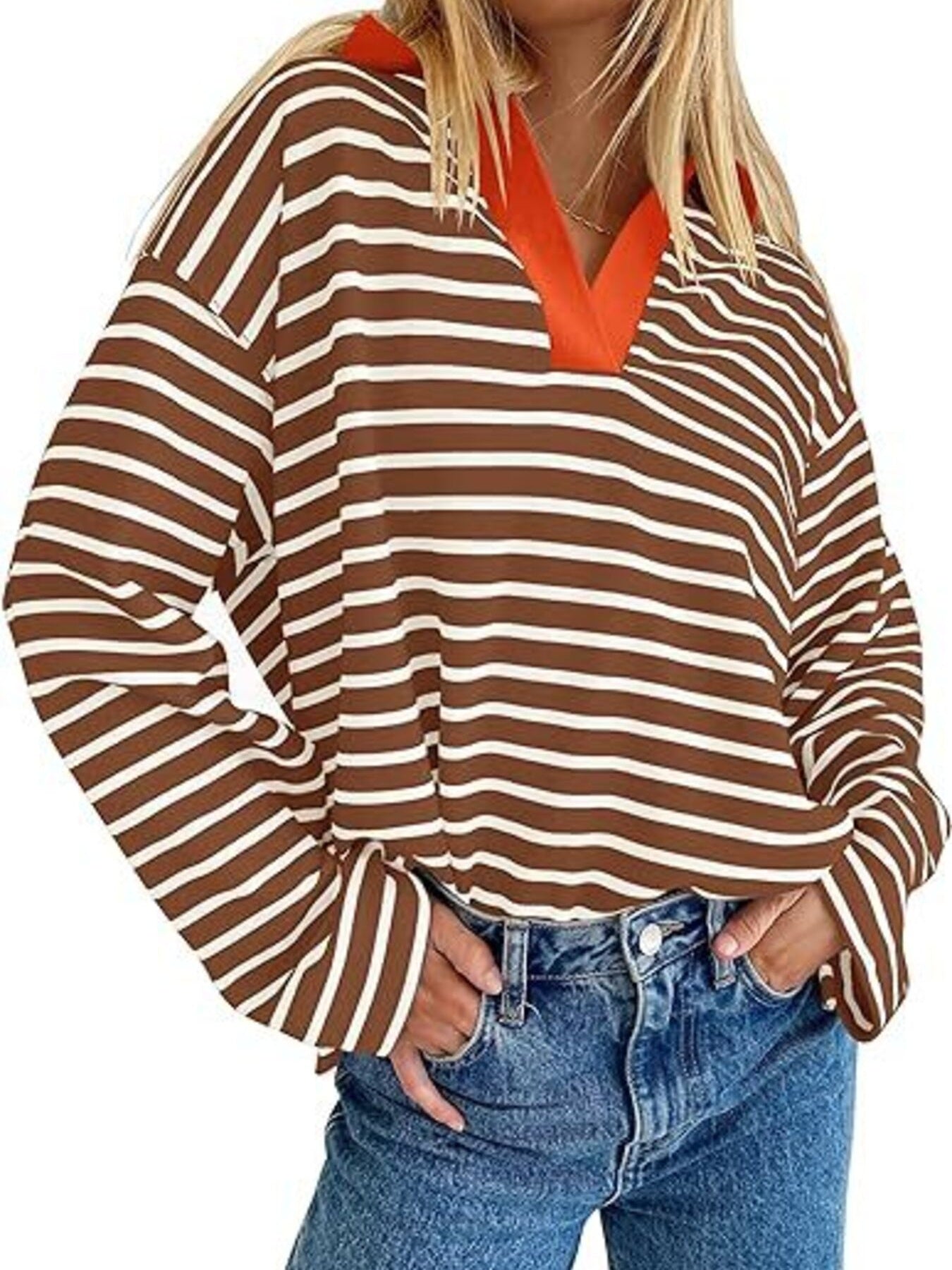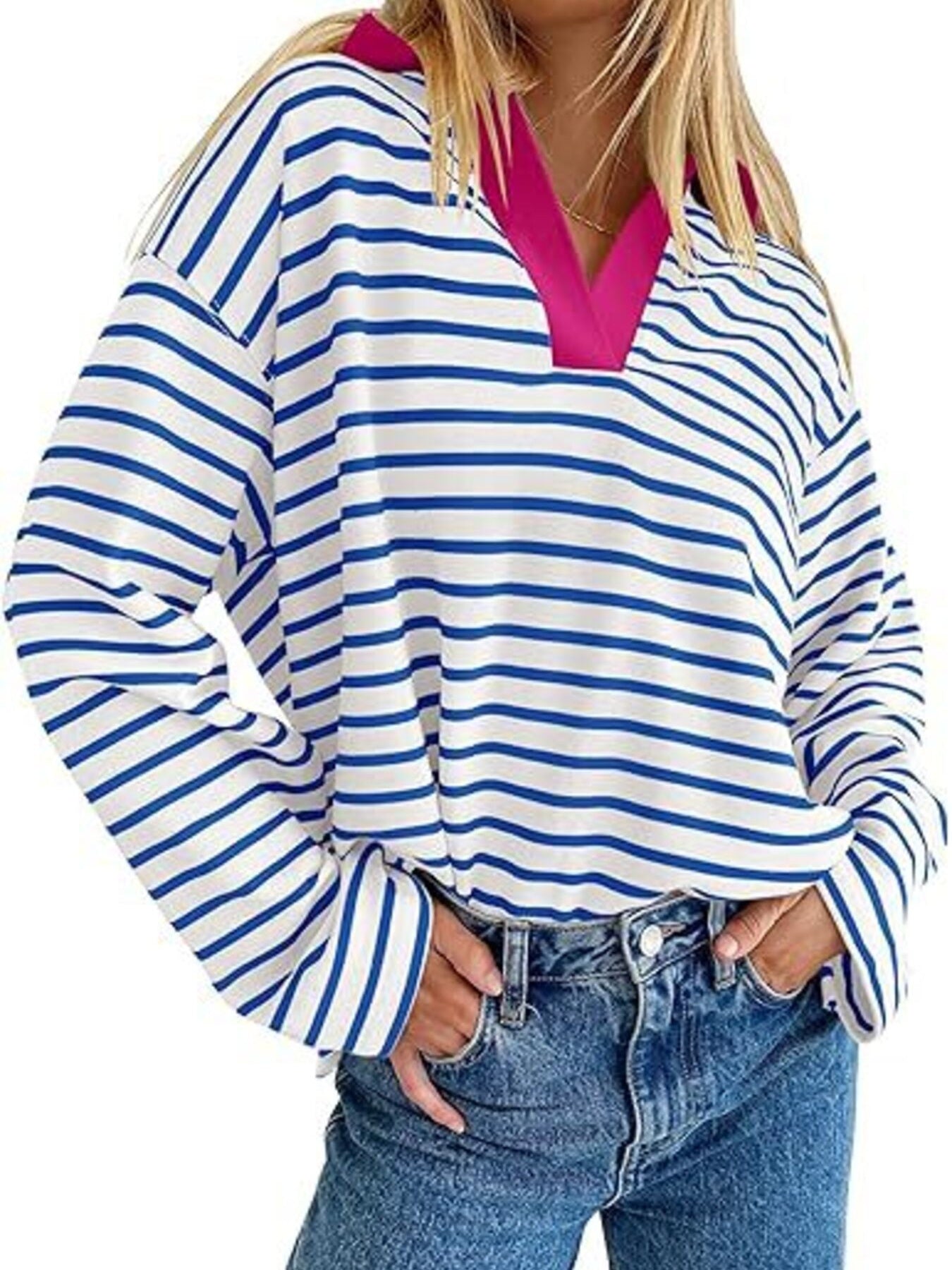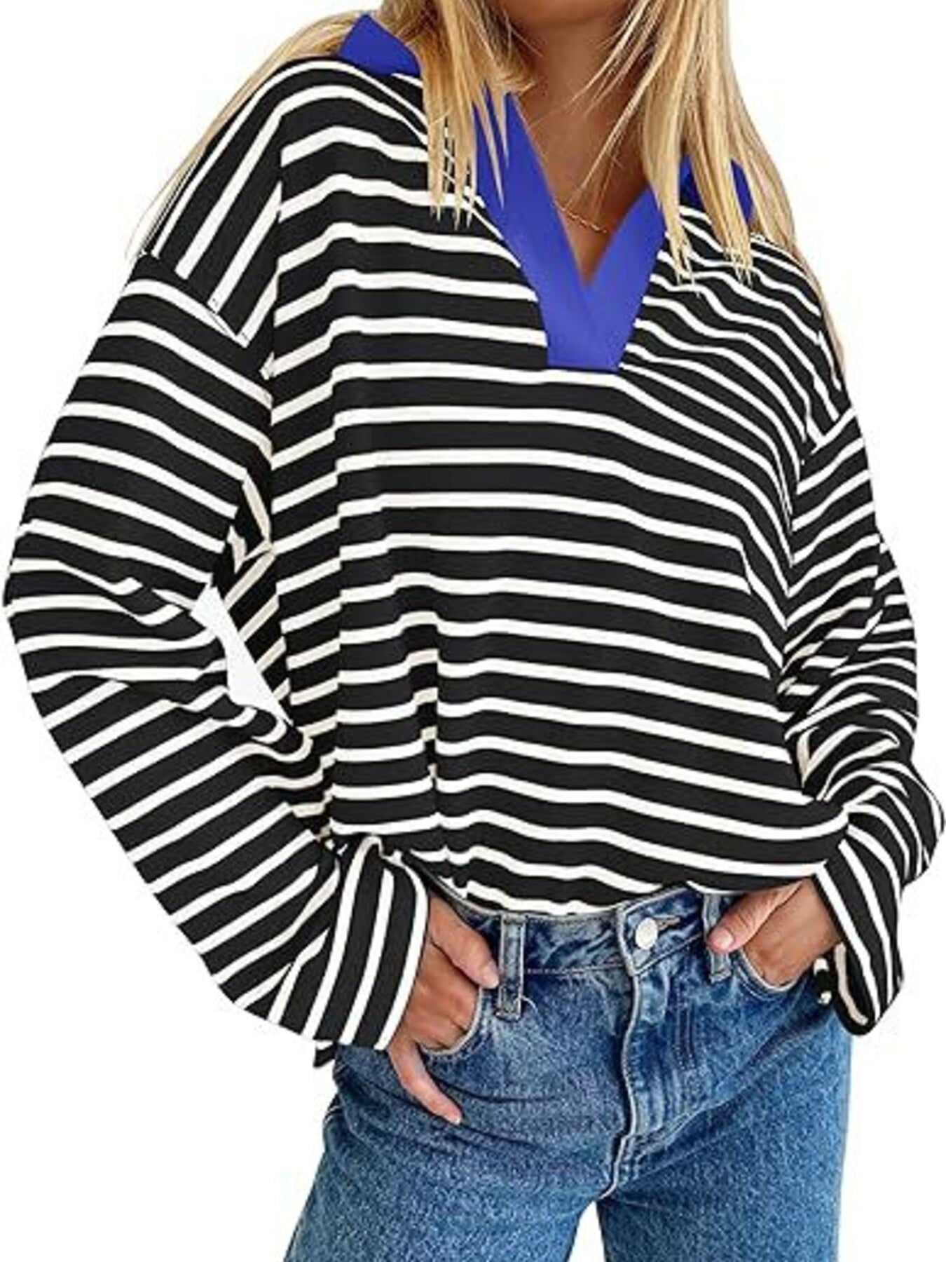Luxlinn | Striped Contrast Collar Long Sleeve Top – Stylish Women’s Blouse